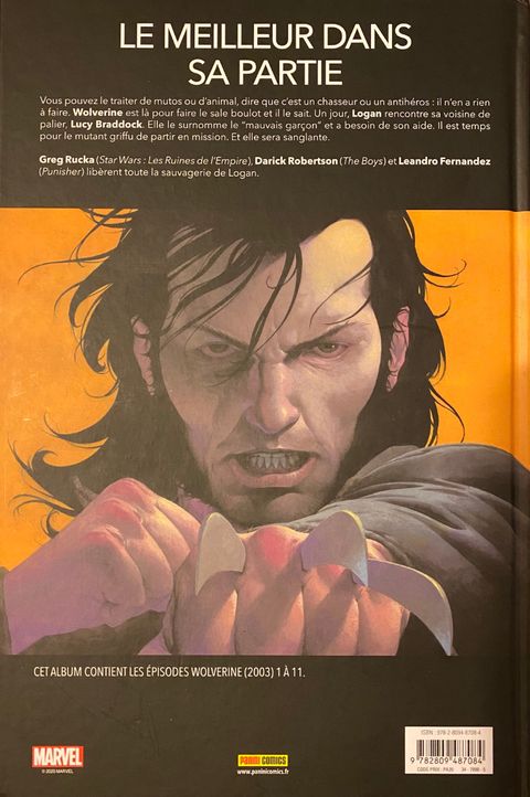 J’ai adoré ce tome, l’ambiance est bien sombre a l’image de logan dans ce run, une bete au grand cœur. les dialogues et l’ecriture sont top, rucka nous livre un super recit. les dessins sont beau egalement, avec un style qui se prete bien a l’ambiance