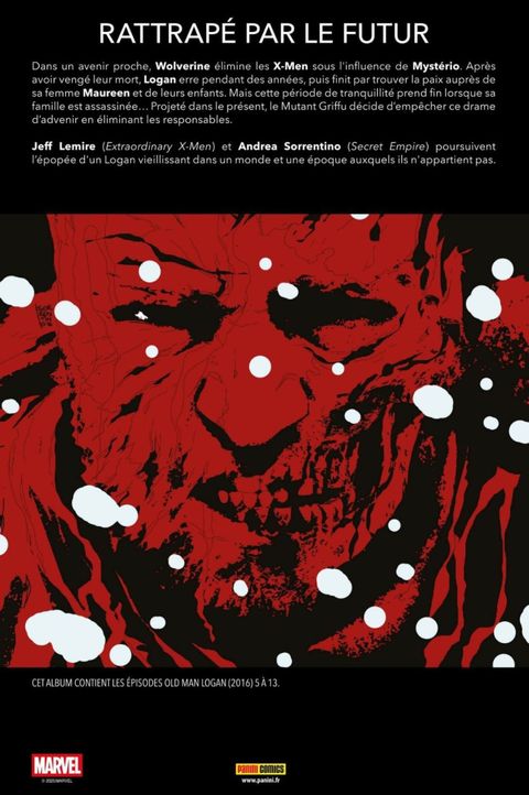 Le vieux Logan débarque dans une ville isolée du Canada qui se retrouve coupée du monde neuf mois par an. Mais l'ancien Wolverine y a laissé de mauvais souvenirs... et en plus, les Reavers sont à ses trousses. Logan a-t-il condamné les habitants de Killhorn Falls ? Puis, hanté par le futur apocalyptique d'où il vient, le héros fatigué va tout faire pour changer l'avenir ! La série phénomène de Jeff Lemire et Andrea Sorrentino (qui se sont tellement bien entendus sur ce titre, qu'ils ont ensuite produit plusieurs séries à compte d'auteur ensemble), a arraché le Logan de la célèbre saga de Mark Millar, Old Man Logan, pour le transporter à notre époque, alors que les vilains n'ont pas encore pris le pouvoir. Voici une belle occasion de découvrir une série assez atypique de l'univers mutant.