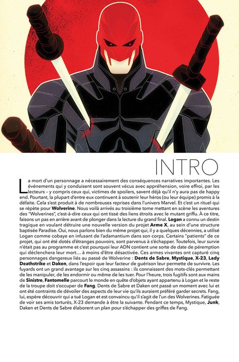 Dernier tome de la saga Après la mort de Wolverine. Les lecteurs qui souhaitent poursuivre l'aventure pourront ensuite lire Old Man Logan et All-New Wolverine. Découvrez la conclusion de la série Wolverines. Qui va survivre, qui va mourir et... qui sera l'héritier de Logan ? Dans leur lutte pour survivre, les protagonistes font des rencontres inattendues. Ils croisent notamment un vieil ami de Wolverine qui vient juste d'apprendre sa mort et entend bien venger le mutant griffu...