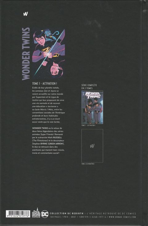 Exilés de leur planète natale, les jumeaux Zan et Jayna se voient accueillis sur notre monde par Superman et la Ligue de Justice qui leur proposent de vivre une vie normale et de recevoir une éducation « terrienne » au lycée Morris ! Mais, entre les conventions sociales de l'Amérique profonde et leurs habitudes extraterrestres, il y a un écart aussi vaste que la voie lactée. Contenu vo : Wonder Twins #1-6.