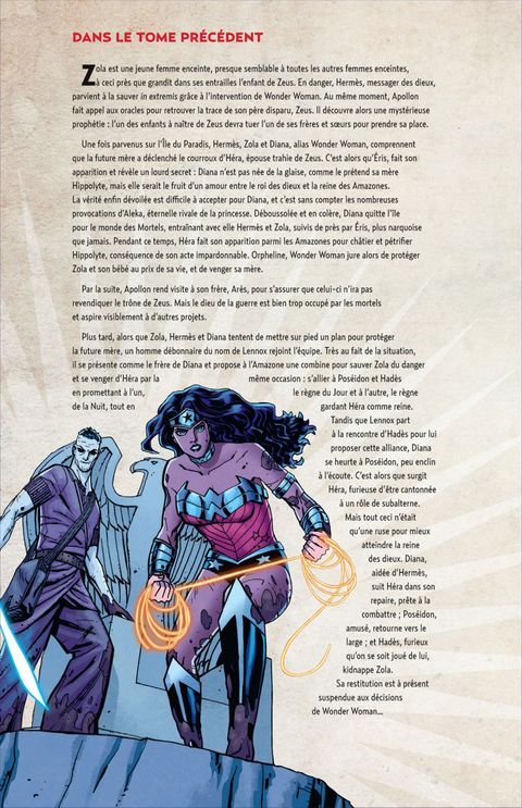 Après avoir appris la vérité sur son ascendance, Diana part à la recherche de Zola, enceinte de Zeus ! Pour la sauver, elle ne devra pas hésiter à affronter les méfaits d'Apollon et Héra et à visiter les Enfers pour y être fiancée à Hadès ! (contient Wonder Woman # 7-12)