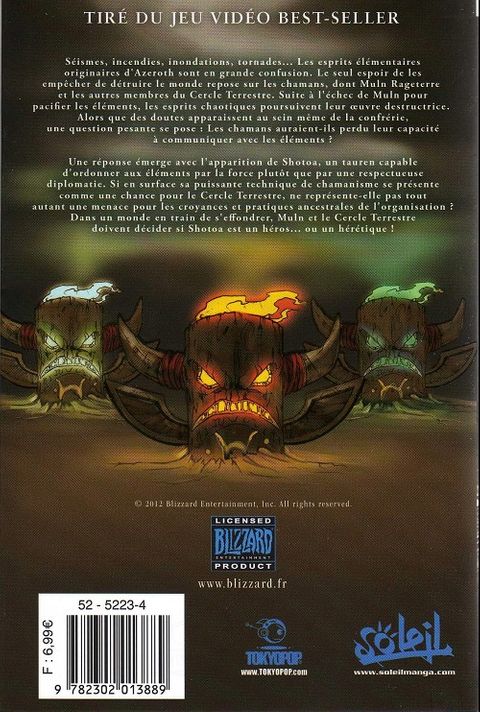 Les éléments sur Azeroth sont devenus incontrôlables. Tremblements de terre, incendies, inondations, tornades, les catastrophes naturelles s'enchaînent et terrorisent les peuples. Le maître Shaman Muln Earthring tente alors de pacifier les éléments, mais ses supplications ne parviennent pas à atteindre les éléments. Le clan est pris d'un doute. Son Shaman aurait-il perdu ses pouvoirs ? Découvrez le dernier volume de la collection des World of Warcraft basé sur les classes de personnages (DeathKnight, Mage) !