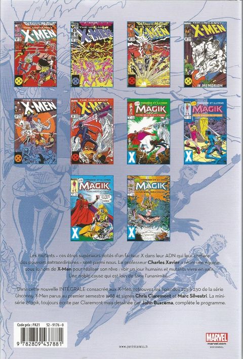 Nous sommes en 1988, les X-Men sont devenus LES superstars des comics ! L'imagination de Chris Claremont est sans limite, au point qu'une année d'aventures ne tient pas dans un seul volume. Nous vous présentons donc la première partie de cette année riche en rebondissements et superbement illustrée par Marc Silvestri (Cyberforce, Wolverine). Les X-Men entament ce que l'on appelle «l'ère australienne», cette époque où le monde les croit morts. Et ce n'est pas tout ! Nous proposons également la saga Magie, qui date de 1984, mais que nous tenions absolument à offrir à nos lecteurs. Elle raconte ce qui s'est passé quand la jeune soeur de Colossus est tombée dans les Limbes de Belasco. Encore un grand moment dans l'histoire des X-Men !