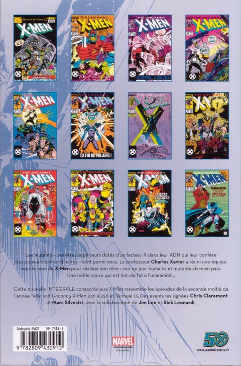 Découvrez la seconde partie de l'année 1989 dans cette nouvelle intégrale X-Men ! Après le crossover Inferno proposé dans le tome précédent, les mutants poursuivent leurs aventures et affrontent Donald Pierce et son groupe de mercenaires, les Reavers. De l'Australie à la Terre Sauvage, Wolverine et ses coéquipiers sont au coeur de ces épisodes incontournables signés Chris Claremont, Marc Silvestri, Jim Lee et Rick Leonardi. Un annual de Terry Austin et Mike Vosburg complète le programme.