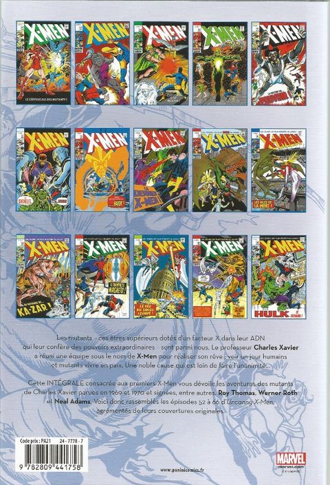 Cette intégrale marque la fin d'une ère. La série X-Men s'est en effet arrêtée en 1970 avant de renaître quelques années plus tard. Imaginés par Roy Thomas et Neal Adams, ces épisodes mettent en scène les premières apparitions d'Havok, Lorna, Sauron et Sunfire !
