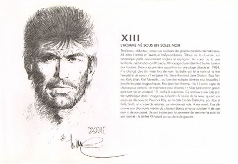 Album originellement offert par 13ème Rue. Cet ouvrage réunit les différentes identités de XIII avec une petite biographie et des dessins présentant l'environnement de l'identité empruntée par XIII au moment de l'aventure.