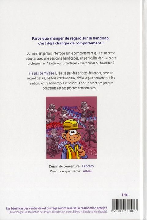 Qui ne s'est jamais interrogé sur le comportement qu'il était censé adopter avec une personne handicapée, en particulier dans le cadre professionnel ? Éviter ou surprotéger ? Dénigrer ou favoriser ? Y'a pas de malaise !, réalisé par des artistes de renom, pose un regard décalé, parfois irrévérencieux, drôle le plus souvent, sur les relations entre handicapés et valides au sein de l'entreprise. Piquant au vif les travers et maladresses, sans angélisme ni mièvrerie, et sans moralisme, chaque saynète questionne le lecteur sur la façon de s'adapter aux personnes ayant un handicap sans les avantager, ni les désavantager, mais simplement en les considérant de la même façon et au même niveau que les valides, chacun ayant ses propres contraintes et ses propres compétences...