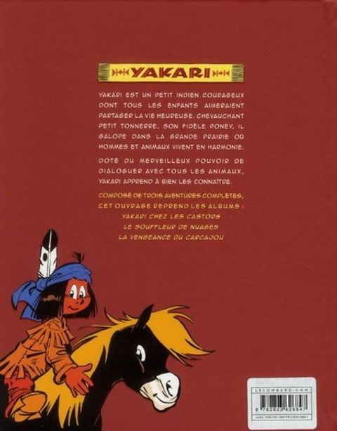 Lancée en 2009 dans une présentation inédite, la collection «Yakari et ses Amis animaux» connaît un beau succès. Après «Yakari, l'Ami des Chevaux», voici la mini-intégrale consacrée à «Yakari, l'Ami des Castors». Derib et Job y rendent hommage à l'ingénieux petit peuple amphibie, grand bâtisseur, fidèle complice, à coups de dents, à coups de queue, des palpitantes aventures vécues par le courageux enfant sioux... Cet ouvrage réunit en un format différent, les 3 albums suivants: «Yakari chez les Castors», «Le Souffleur de Nuages» et «La Vengeance du Carcajou». La prochaine mini-intégrale s'intitulera : «Yakari, l'Ami des Ours». GROOOAA !