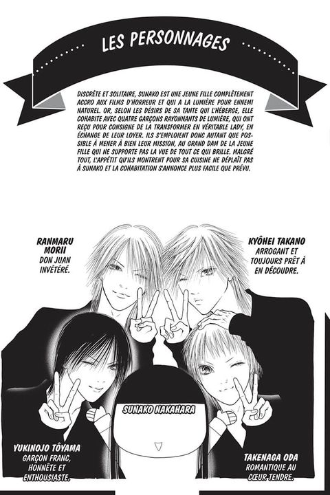 Clap de fin pour Sunako, jeune fille passionnée d'horreur, et ses quatre colocataires éblouissants ! La relation de Sunako et Kyôhei prend enfin toute sa mesure dans ce dernier tome, entre fête d'Halloween mouvementée, festival du lycée plein de rebondissements et croisière de luxe... Sunako va-t-elle se métamorphoser en la parfaite incarnation du Yamato Nadeshiko, l'oeillet superbe qui représente l'idéal féminin japonais ? À vous de le découvrir !