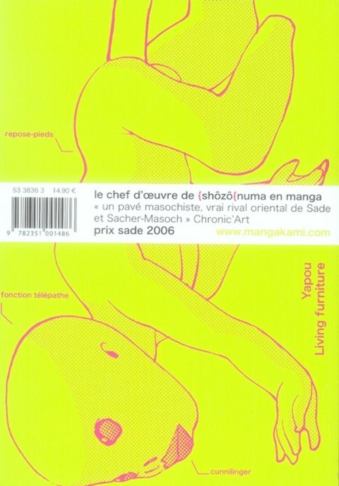 À l'image d'un Jules Verne extravagant et pervers, Shozo Numa explore le système de domination que subit le Yapou (descendant de l'homme nippon rabaissé au rang de bétail) sur l'empire EHS, au XLe siècle. Un vaisseau spatial chute sur Terre, dans les années 196X, près d'un jeune couple (une Allemande et un Japonais). Après avoir porté secours à son occupante, la situation tourne rapidement au quiproquo, cette dernière croyant être retournée à son époque. Face à cet homme accroupi - car embarassé par sa nudité - et à cette femme blonde et belle, elle croit avoir à faire à une personne de noblesse et son yapou... Yapou, bétail humain est le plus grand écrit idéologique qu'un Japonais ait réalisé après-guerre. Il représente la quintessence littéraire de la détestation de soi des Japonais traumatisés par l'Histoire.
