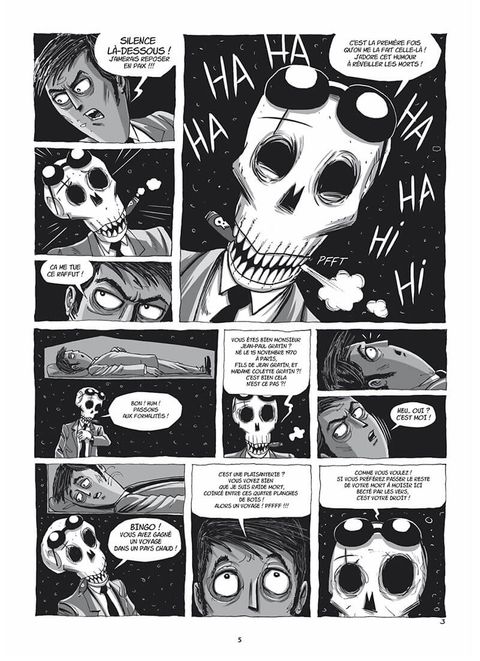 Monsieur Jean Paul Gratin est mort. Mort et enterré. Mais le repos éternel n'est pas encore au programme. Car, de son cercueil, un ultime voyage attend notre défunt... En compagnie d'un étrange guide, un squelette à l'humour... mortel, sorti tout droit d'un film de Tim Burton. Son nom ? Mister Bône. Cette descente au pays des défunts se transforme grâce à lui en un voyage initiatique, loin d'être triste !