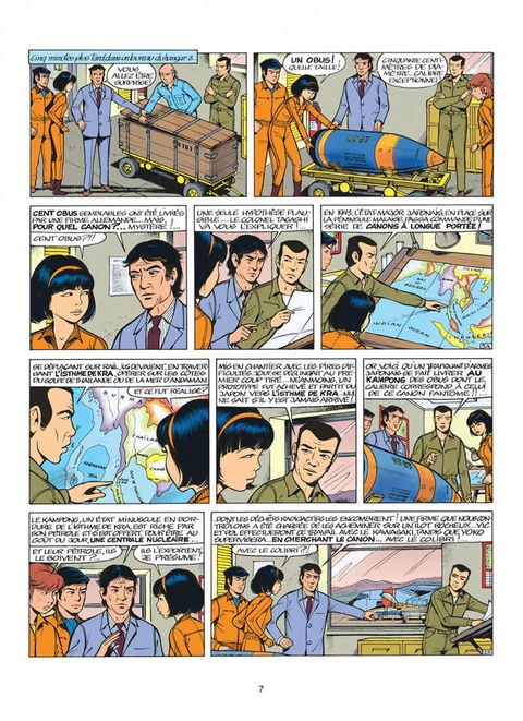 Elle était assez triste, Yoko Tsuno, de devoir mettre fin aux vols d’essais qu’elle effectuait pour tester le "Colibri" avant que son acheteur en prenne possession. C’était un petit avion hyper maniable qu’elle avait vite adopté... Mais lorsque M. Hertzel vint à elle avec un nouvel ordre de mission et qu’elle su qu’elle allait justement devoir piloter le Colibri dans le cadre de cette mission, Yoko Tsuno comprit avec joie que ses expériences de vol à bord de cet engin allaient continuer ! Un trafiquant d’armes japonais installé au Kampong, sur l’isthme de Kra, venait de se faire livrer des obus d’un calibre impressionnant ; des obus qui, au su des experts, ne pouvaient être tirés que par un énorme canon dont on avait d’ailleurs perdu la trace. Yoko Tsuno, Vic et Pol allaient donc partir pour le Kampong afin de localiser le mystérieux canon et de le neutraliser. Ils devaient faire vite, car la menace était réelle : les livraisons d’obus n’étaient pas sans avertir du risque de l’imminence de leur utilisation...