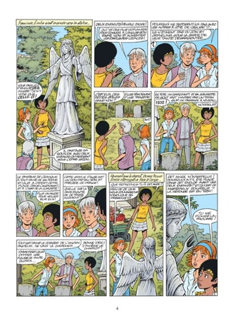Nous sommes à l'ombre de l'église de Cornstone, près d'Édimbourg, où Émilia et Bonnie viennent fleurir la tombe de la tante Gloria. Le Pasteur Macduff leur raconte la triste histoire de ces deux jeunes orphelins tués dans un accident de train alors que la voiture qui les transportait était immobilisée sur un passage à niveaux. Ils reposent dans "l'enclos des anges", un lieu à l'écart et à l'abandon, où un ange veille sur eux. Étrangement, la statue, don d'un bienfaiteur anonyme, date de 1934, un an avant l'accident funeste. Bouleversée par cette tragédie, Émilia décide de demander à son arrière-grand-père (qui était vivant en 1935) de sauver la vie des deux enfants. Pour ce faire, une solution : utiliser la machine temporelle qui dort dans l'annexe. C'est ainsi qu'Émilia part pour 1935, laissant Bonnie désemparée. Cette dernière alerte Yoko qui part sur les traces de l'adolescente et qui tentera d'éviter la catastrophe ferroviaire...