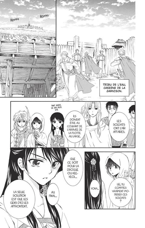 La flotte du Kai du Sud menace la côte de Sensui ! Yona et ses amis vont devoir trouver une stratégie pour défendre les terres de la Tribu de l'eau. Cela implique de faire équipe avec Soo-won qui se présente comme le garde du corps de Lili... Quelle va être la réaction de Hak lorsqu'il va se retrouver face à son ancien ami ?