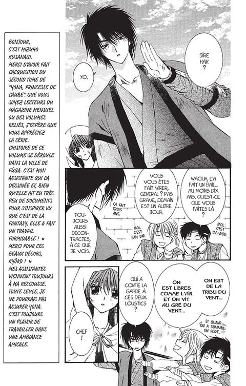 Yona, princesse du royaume de Kôka, est élevée et choyée par son père, le roi, et protégée par son garde du corps et ami d'enfance, Hak. Mais le jour de son seizième anniversaire, son destin bascule lorsque son cousin Soo-won, l'élu de son coeur, tue le père de Yona de ses propres mains ! Fuyant le château, elle va apaiser les blessures de son coeur à Fûga, ville natale de Hak. Mais le répit est de courte durée ! La ville devient très vite la cible de la tribu du feu qui s'est ralliée à Soo-won. Yona va-t-elle laisser ses amis de la tribu du vent souffrir ainsi ?