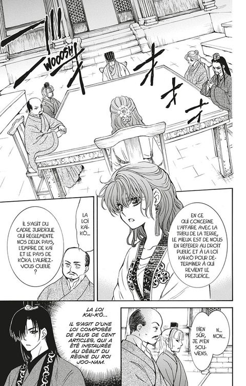 <div style="text-align: justify;">Pour remplacer Soo-won, qui souffre de la maladie écarlate, Yona siège à la réunion avec les représentants de l’Empire de Kai. Elle parvient à se faire respecter et à discuter à pied d’égalité avec eux, mais l’un des émissaires décède brutalement, et la jeune princesse se retrouve accusée du meurtre…</div>