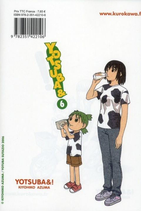 Dans ce volume, Yotsuba apprend à recycler et mais aussi à faire du vélo en toute sécurité avec son père. Elle découvre aussi ce qu'est le lieu de travail. Elle fait ses devoirs avec les voisins et construit une étagère avec Jumbo. Enfin, elle déguste bouteille après bouteille du lait délicieux.