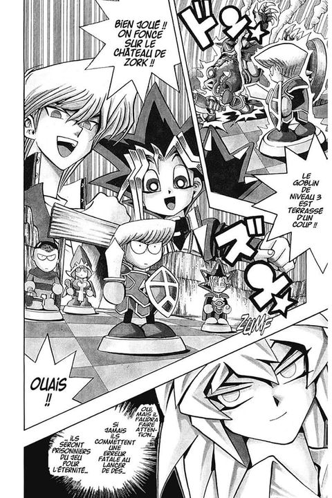 Tome 7. Les jeux de dés manquaient jusqu'alors, mais le vide est comblé avec l'entrée en scène du maître, l'inventeur du jeu «Magic & Wizard»: Pegasus J. Crawford. Yugi l'affronte mais perd pour la première fois et doit subir la sanction. Tome 8. Le perfide Pegasus J. a enlevé le grand-père de Yugi. Il le force à participer à un tournoi de duellistes. Yugi, Jonouchi, Honda et Anzu se rendent sur la terre des duellistes. L'objectif des duels est de récupérer des étoiles à chaque victoire, dans un temps imparti, qui permettront aux détenteurs de franchir la porte d'entrée du château de Pégasus. Le premier duel voit le face à face de Yugi et de Hoga. Victoire de Yugi. Dans le deuxième duel, Jonouchi doit vaincre la séduisante Mai Kujoku.