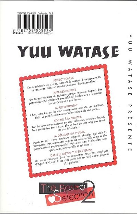Retrouvez un florilège de nouvelles par la reine des histoires d'amour, Yuu WATASE ! Dans Perfect Lovers, Kana et Mitsuharu se retrouvent projetés dans un univers parallèle où l'homosexualité est la norme et où ils doivent se cacher pour s'aimer. Retrouvez également Pajama no Ojama, sa toute première histoire ainsi que sa suite, Pajama no Labyrinth !