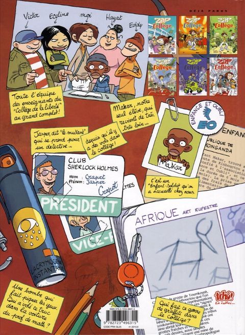 Makar, un jeune garçon africain d’un pays en difficulté, est pris par mégarde pour un enfant soldat et récupéré par un organisme humanitaire. Étant muet, il ne parvient pas à expliquer sa situation et à leur faire comprendre qu’ils sont dans l’erreur. Ni une ni deux, le voilà envoyé tout droit… au Zap Collège ! Là-bas, Jean-Eudes, son nouveau copain, ne garde pas bien longtemps le secret des « origines » de Makar et la rumeur se propage vite parmi tous les comptes Twitter, façon téléphone arabe. Si bien que tout le monde se met à avoir peur de lui maintenant, y compris le principal, et à l’accuser de tous les problèmes du collège !Avec ce septième tome de Zap Collège, Téhem continue de trouver le ton juste pour s’adresser aux adolescents, en conjuguant toujours aussi habilement humour et questions plus profondes.