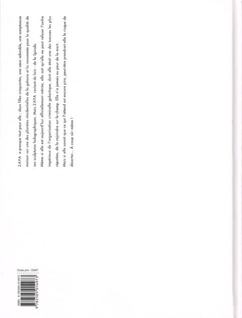 Alors que sa mission vient de commencer, Zaya découvre qu'elle est tombée dans un piège. Echafaudé par le mystérieux snipper, il vise à faire arrêter par la police le plus grand nombre d'agents de la Spirale. La tournure que prennent les événements pousse Zaya à redevenir la femme d'action qu'elle a été des années durant. Malgré sa « retraite » les réflexes de Zaya semblent toujours aussi affûtés pour lui permettre de se sortir de cette situation. Mais, c'était sans compter les mystères de l'hyperespace...