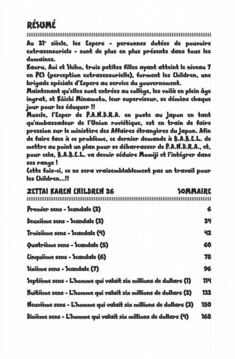 Le ministère des Affaires étrangères du Japon a demandé à B.A.B.E.L. d'intégrer Momiji, la jeune femme Esper de P.A.N.D.R.A., dans ses rangs !! Mais, cette fois-ci, ce ne sont pas les Children qui vont devoir intervenir... La stratégie adoptée par B.A.B.E.L. va, en effet, obliger Minamoto et Sakaki à jouer de leurs charmes !! Espionnage et séduction sont au programme !!