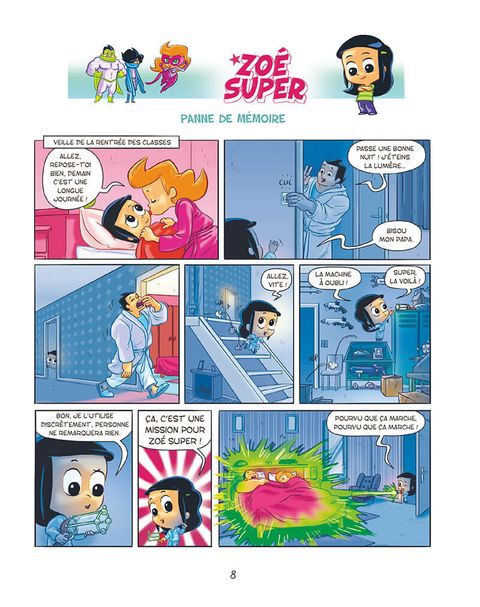 Dans la famille de Zoé Super, tout le monde a des superpouvoirs... sauf elle ! Mais la petite Zoé fait preuve d'une ingéniosité sans limite pour protéger son frère et ses parents des plans de l'infâme professeur Diablo. Eh oui, le pauvre... Il ne connaît pas encore Zoé Super ! Troisième et dernier volume de cette série pleine de charme et de dynamisme ! Zoé est toujours là pour rendre service à ses parents et à son grand-frère Kevin... Bien sûr, si elle pouvait se douter que sa copine Faustine est la propre fille du professeur Diablo que combattent ses parents ! Zoé Super n'a pas de superpouvoir, certes. Mais elle a de la jugeotte et du coeur, ce qui en fait une adversaire de taille pour les superméchants ! La famille Diablo toute entière pourrait bien le découvrir un peu tard...