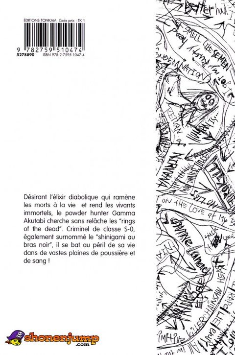 Désirant l’élixir diabolique qui ramène les morts à la vie et rend immortel, le « Powder Hunter » Gamma Akutabi cherche sans relâche les Rings of the Dead, les anneaux des morts. Criminel de classe S-0, également surnommé le « shinigami au bras noir », il se bat au péril de sa vie dans de vastes plaines de poussière et de sang !