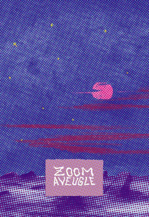 Zoom Aveugle est une bande dessinée de 112 pages. Dans un monde stérile et exsangue, une créature apparaît : un oeil rachitique et flottant. Le livre suit son périple à travers cette terre à l'agonie où les processus toxiques se succèdent, ce chemin cauchemardesque est divisé en cinq chapitres (échos).