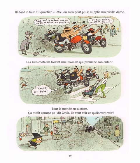 Dans ces 9 nouvelles aventures, Zouk affronte des affreux, des moches et des méchants ! Une fois de plus, notre petite sorcière se montre maligne et courageuse face au danger. Elle affronte des ogres, des croquemitaines, des méchants loups, des bandits, des grosmotards en pétard et des trolls ! Une vraie graine de super héroïne, cette Zouk !