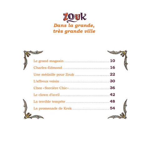 Zouk, la petite sorcière qui a du caractère, arpente la grande, très grande ville.Elle y croise un petit chien qui parle, un clown pas drôle, un laveur de vitres et une foule de gens tous très différents et très étonnants !De l'humour, de la magie et beaucoup de fantaisie : 8 histoires courtes idéales pour entrer dans la lecture.